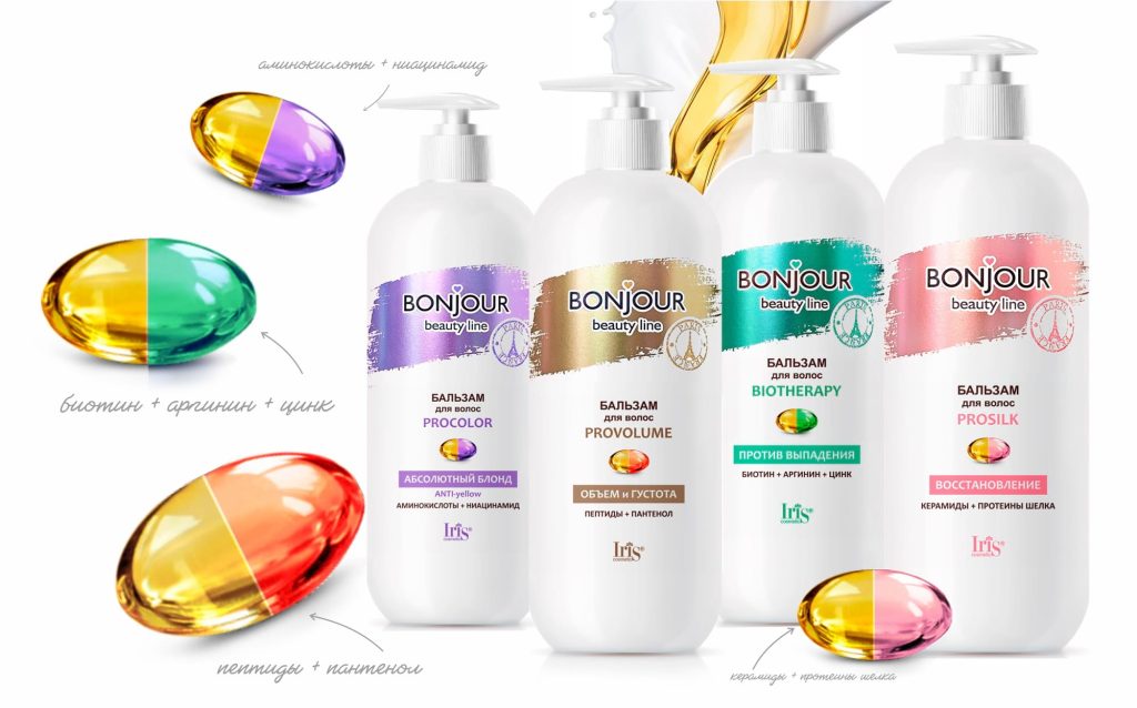 Удобное извлечение с помощью дозатора, экономичный формат 480 мл, утонченные ароматы, трендовые консистенции – встречаем beauty-новинки в линии Bonjour Beauty line, бальзамы для волос.